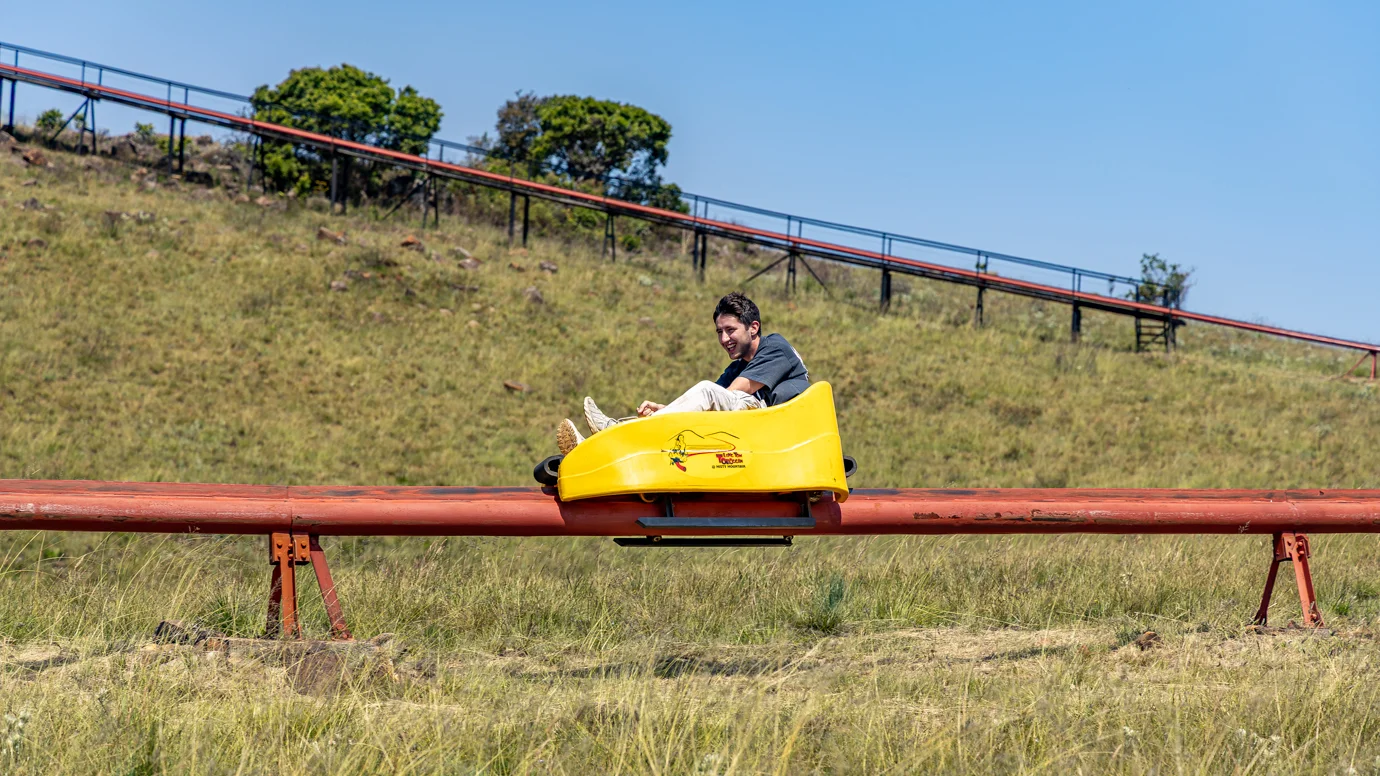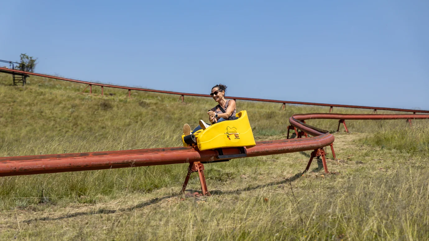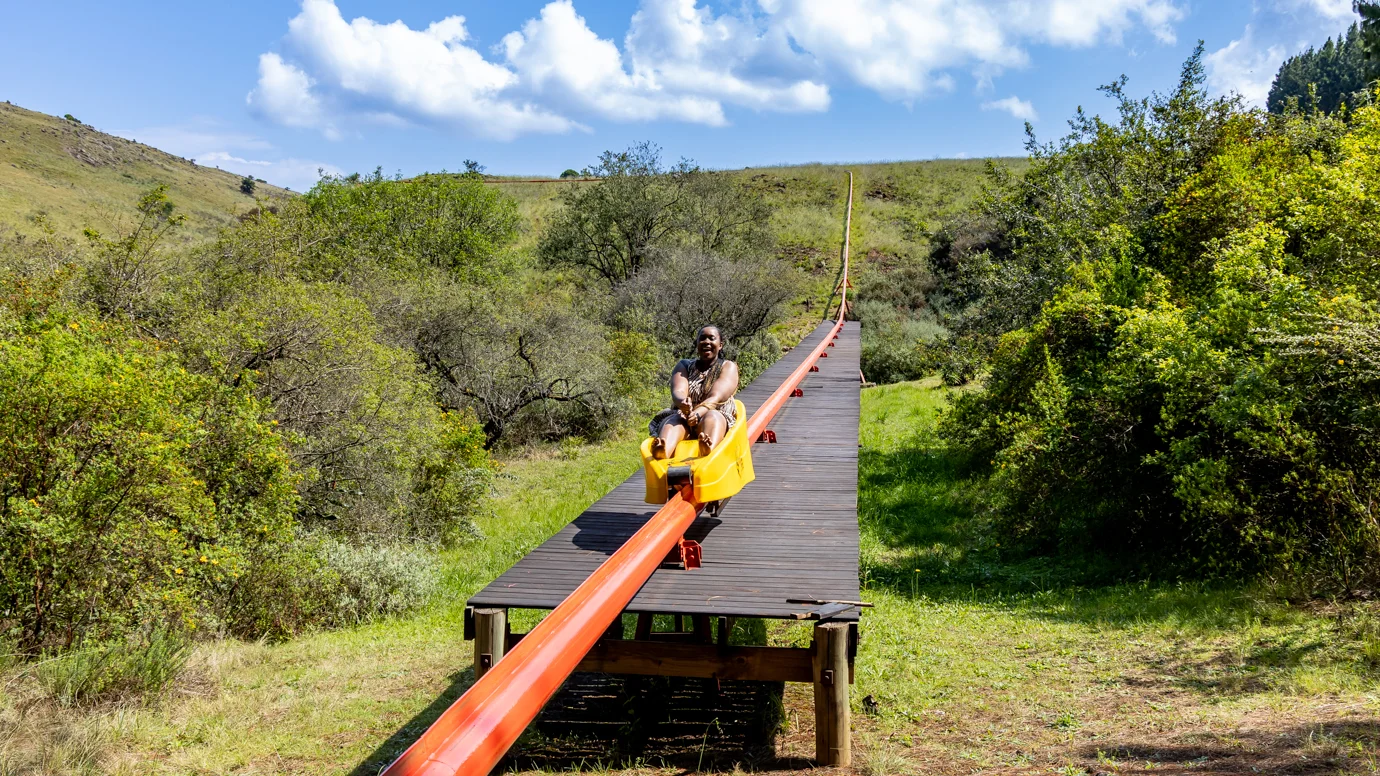 Enjoy the ride of your life and ‘excite your soul’ on Misty Mountain’s Long Tom Toboggan. Feel the wind in your hair and the thrill in your belly when you wind and whoosh around Mpumalanga’s Long Tom Pass mountains on the Long Tom Toboggan, the longest toboggan run in Africa with an impressive 1.7 km track. Simply hop on board your Long Tom Toboggan cart and prepare to take a deep breath when you reach a speed of 45 kilometres an hour during your three-minute ride, as you twist and turn through wild flowers, open grassland and pine forests.